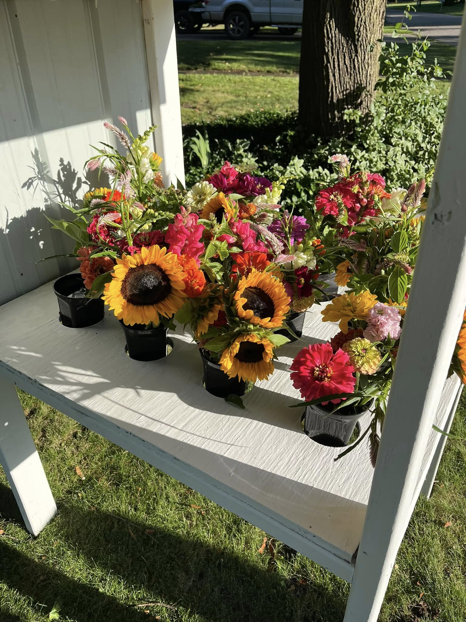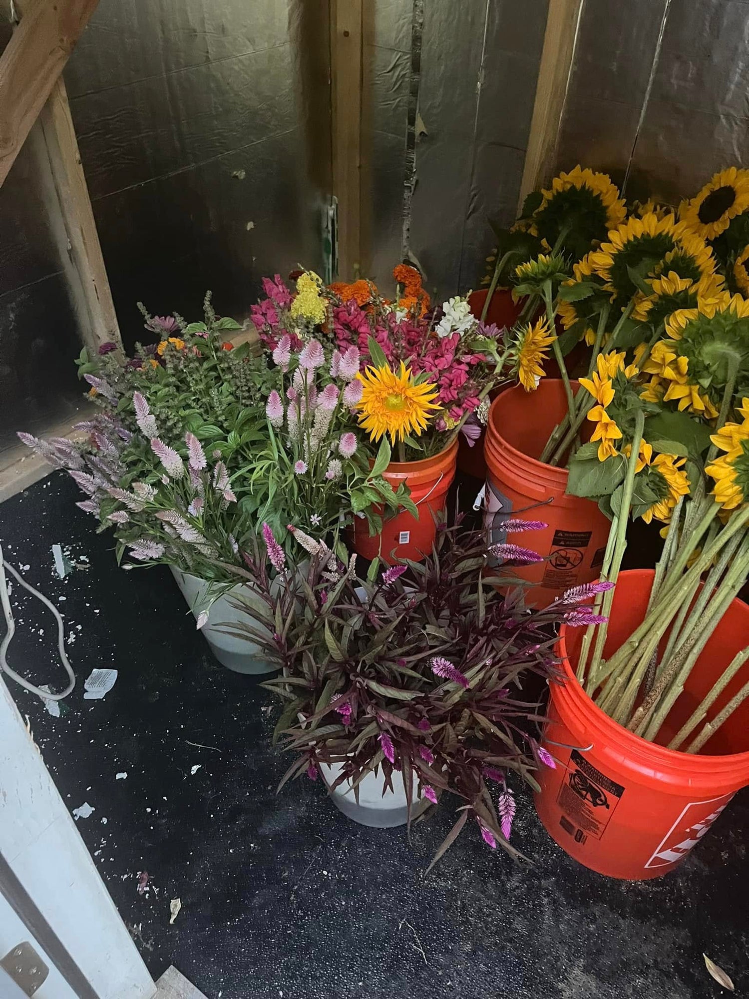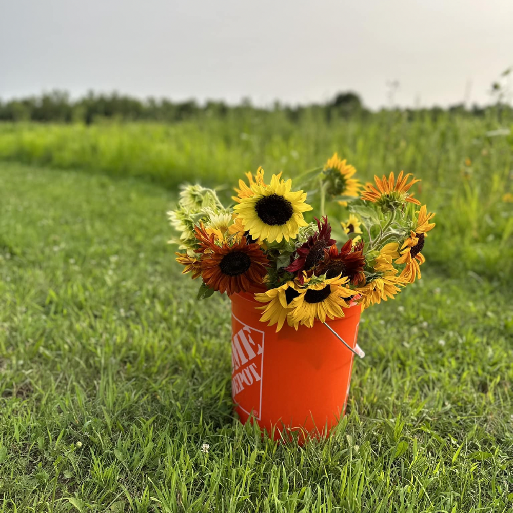 Our DIY Flower Buckets are bursting with seasonal farm-fresh beauty—perfect for brides, party hosts, event planners, or anyone wanting to create their own floral magic. Each 10" black bucket is filled with a grower’s choice mix of focal blooms, fillers, and foliage, freshly harvested from our fields.
