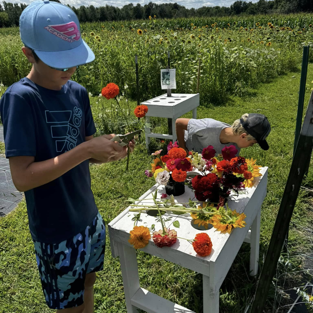 We don’t recommend it. Our farm is full of pollinators like bees and wasps, which are essential to our flowers—but may pose a risk to anyone with severe allergies.